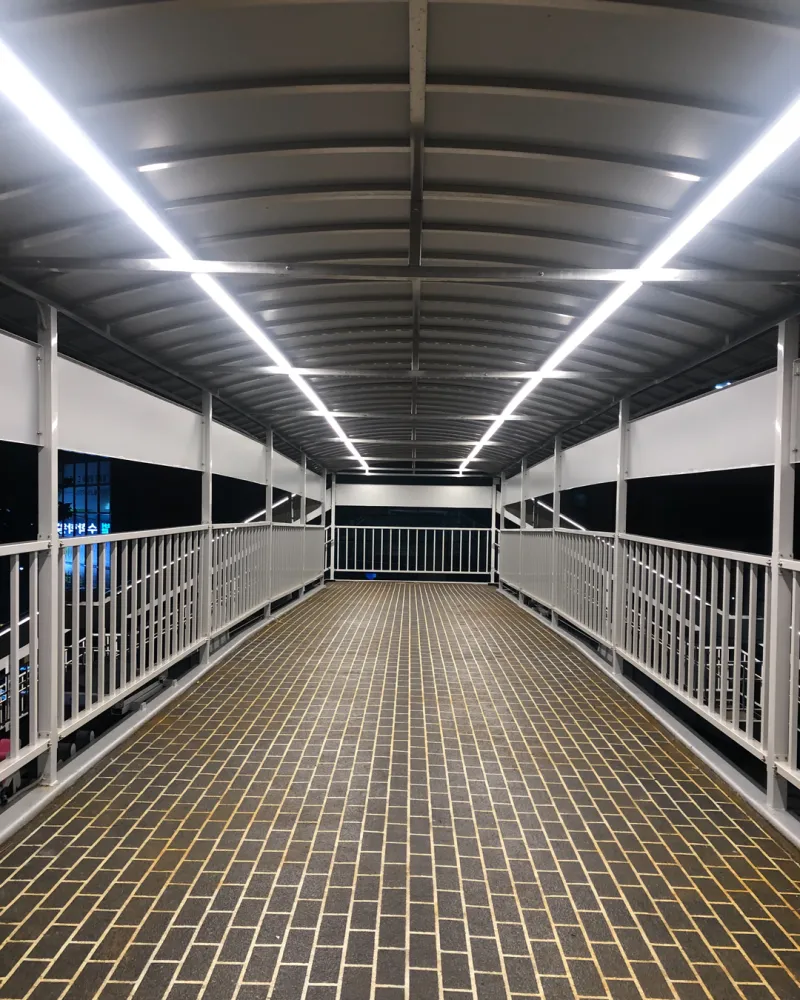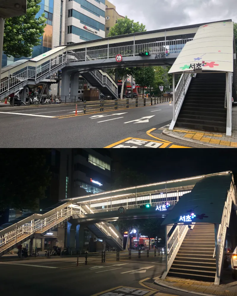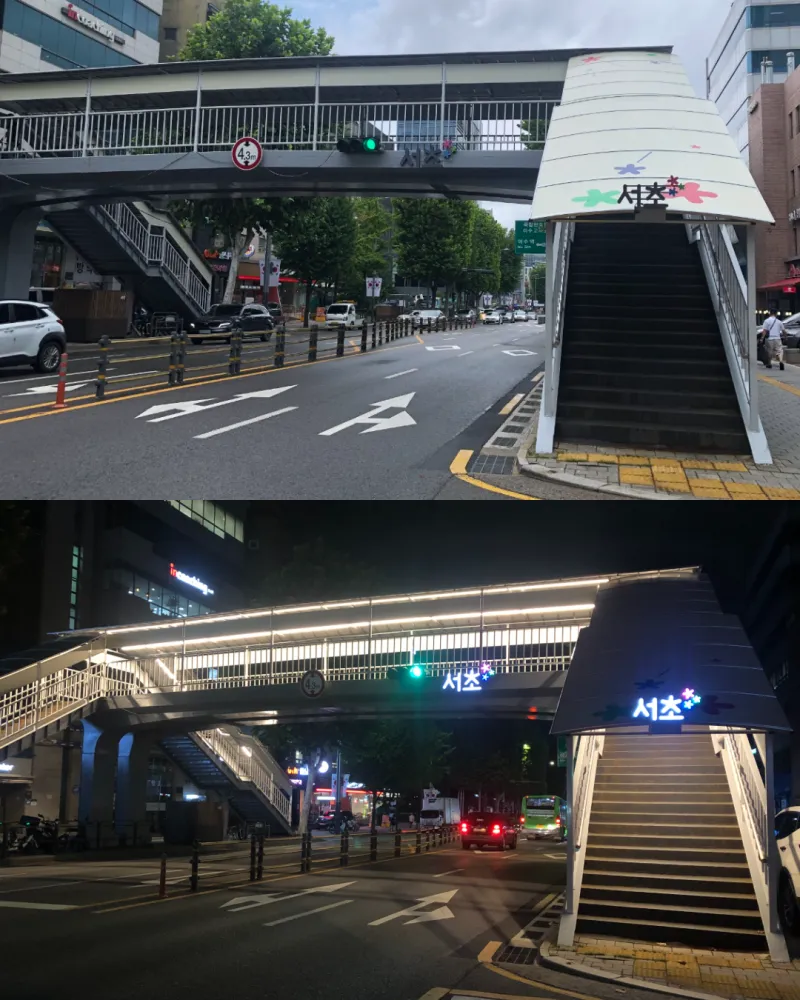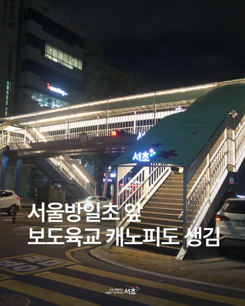서울방일초등학교 앞 보도육교에 캐노피를 설치했어요.