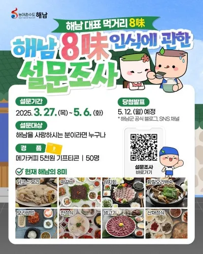 🎉해남 8味 인식 설문조사 이벤트🎉