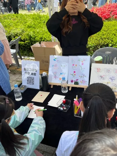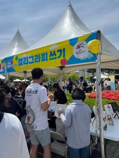 체험 꾸러미는 무료와 유료 두 가지가 있었는데, 카네이션 만들기, 캘리그라피 쓰기, 서예(가훈) 쓰기, 그립톡&지비츠 만들기, 캐릭터 타투 스티커 등 알찬 체험 부스들이 준비되어 있었습니다.
