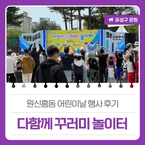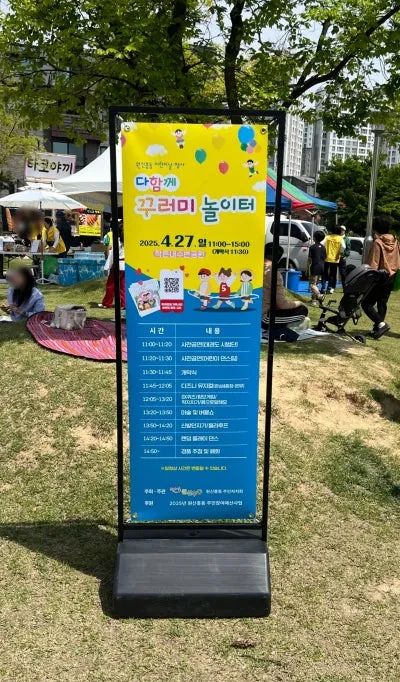 4월 27일 일요일, 11시부터 15시까지 작은내수변공원에서 원신흥동 주민자치회에서 주관한 2025년 어린이날 가족 행사 <다함께 꾸러미 놀이터>가 개최되었습니다.