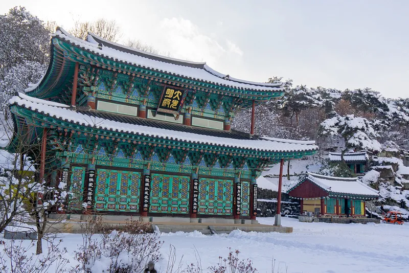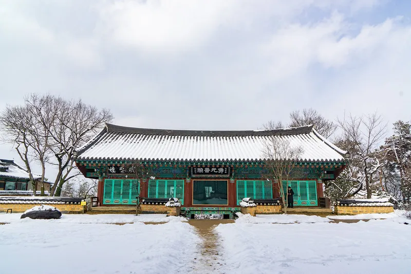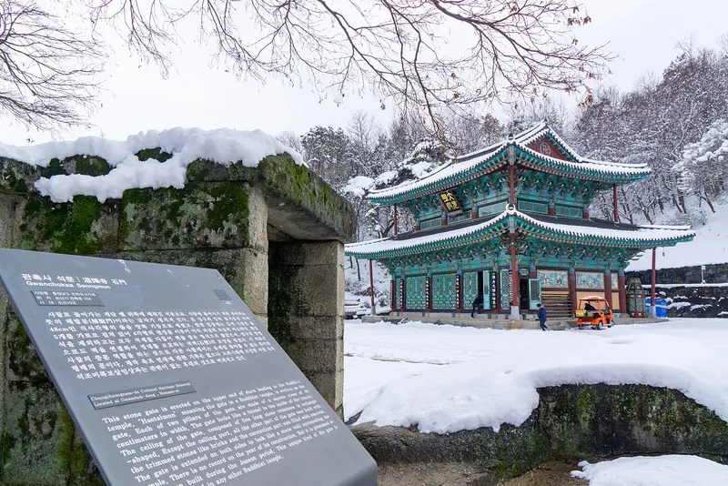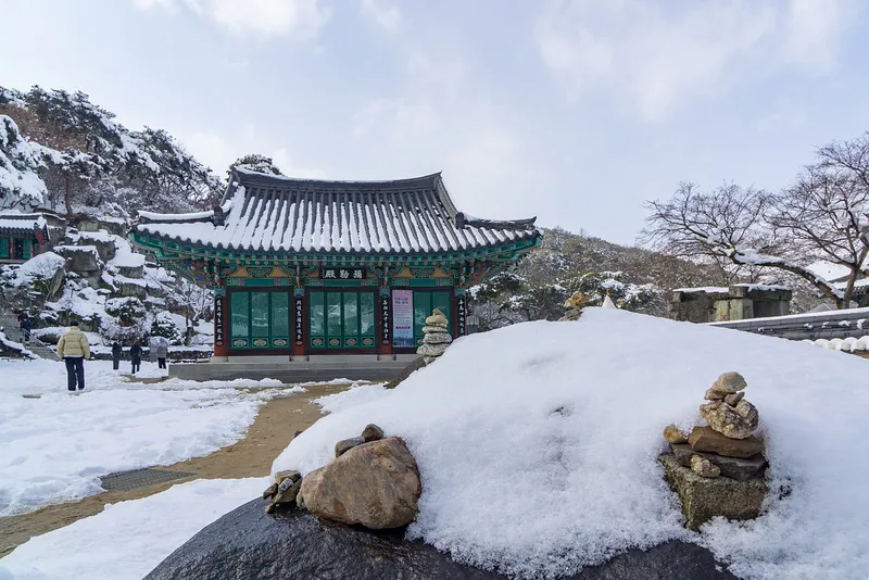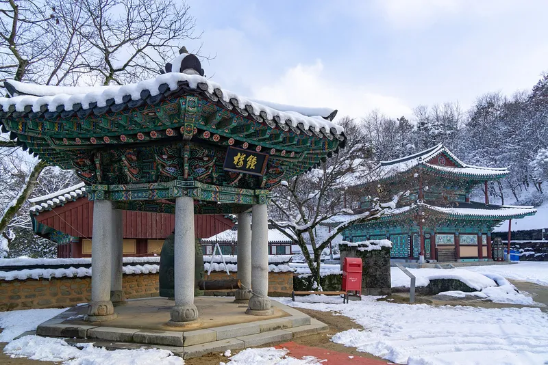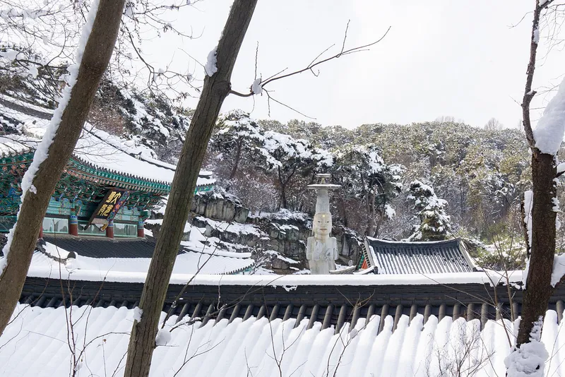 명곡루와 승방으로 사용되는 전각에 눈이 쌓여 있어서 겨울 산사의 모습이 느껴집니다. 스님들은 이맘때쯤 동안거에 들었을 텐데요. 동안거 기간 동안 어떤 화두를 갖고 정진할지 궁금해지기도 했습니다.