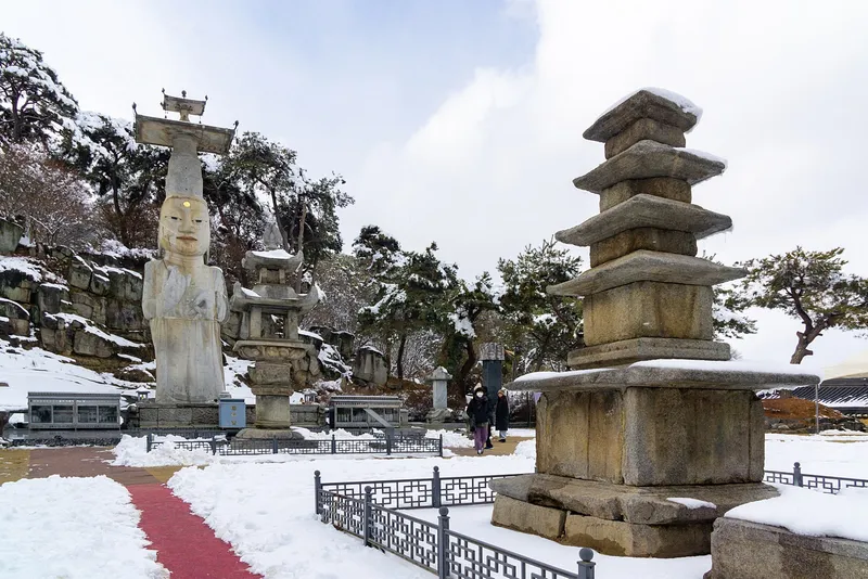 눈이 내리는 관촉사의 설경이 보고 싶어서 한 시간 정도 경내를 서성거렸습니다. 그런데 끝내 눈이 내리는 풍경은 사진에 담지 못했습니다. 관촉사의 야경과 안개 낀 모습에 이어 이번에는 설경을 제대로 촬영해 보고 싶었기 때문에 조금 아쉬웠습니다. 겨울이 가기 전에 마지막 눈이 내리면 다시 찾아야겠습니다. 설 연휴 동안 내린 눈의 양이 많아서 일주일 정도는 눈 쌓인 관촉사의 모습을 볼 수 있을 것 같은데요. 논산 11경 중 제1경을 자랑하는 관촉사의 설경이 궁금하시다면 서둘러 스탬프투어를 즐겨보시기 바랍니다.