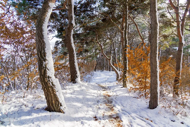 반야산 숲길은 완만한 등산로에 소나무가 울창합니다. 한 겨울에도 푸르름을 잃지 않는 소나무들 덕분에 산책을 나선 마음도 더불어 생기를 찾게 되는데요. 소나무는 공기 중의 유해물질을 제거하고 면역력을 강화하는 피톤치드를 방출해서 정신적인 안정을 가져다줍니다. 그래서 우울증이나 불안 증상을 완화하는 데 도움을 주니 활동이 적은 겨울철에 반야산 숲길은 남녀노소 누구에게나 추천할 만한 장소입니다.