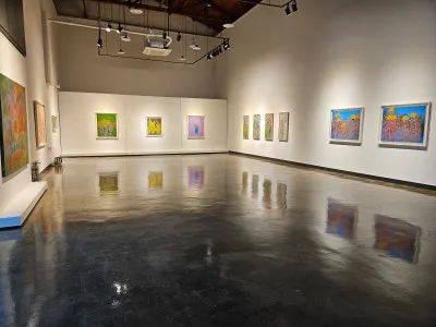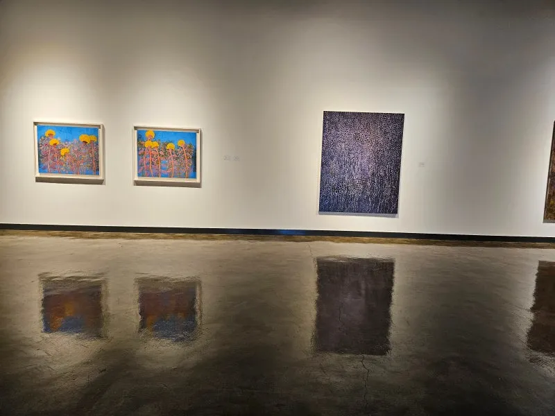 옥천골 미술관 전시장에 들어서자 좌우의 색감이 너무 달라 같은 사람이 그린 작품이 맞나 싶을 정도로 의문이 갔다. 점심시간이 막 지난 주말임에도 불구하고 입구에서 방문객을 맞이하고 있었다.