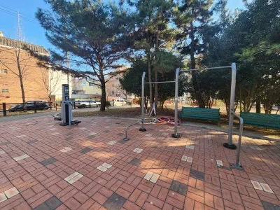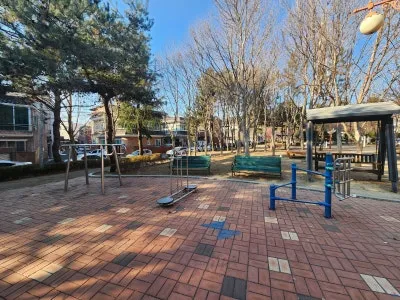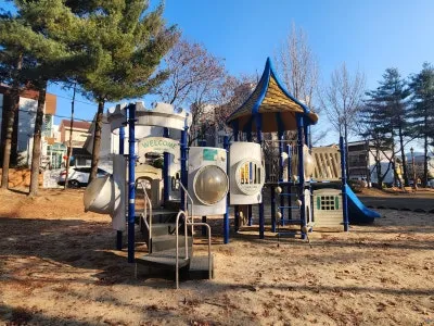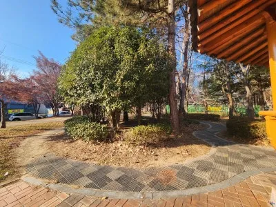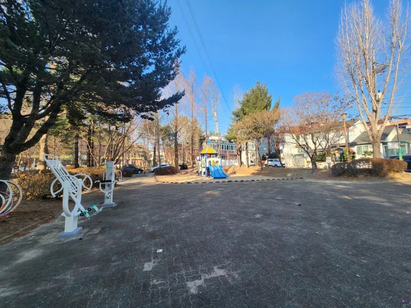 넓은 공터에 야외 운동기구와 아이들이 좋아하는 놀이조합대도 설치되어 있어 뛰어놀기 좋았습니다.