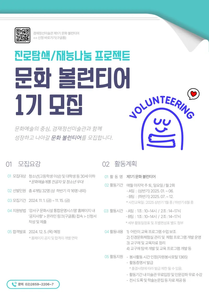 겸재정선 미술관과 함께 성장하고 나아갈 문화 지원자를 모집합니다.👍