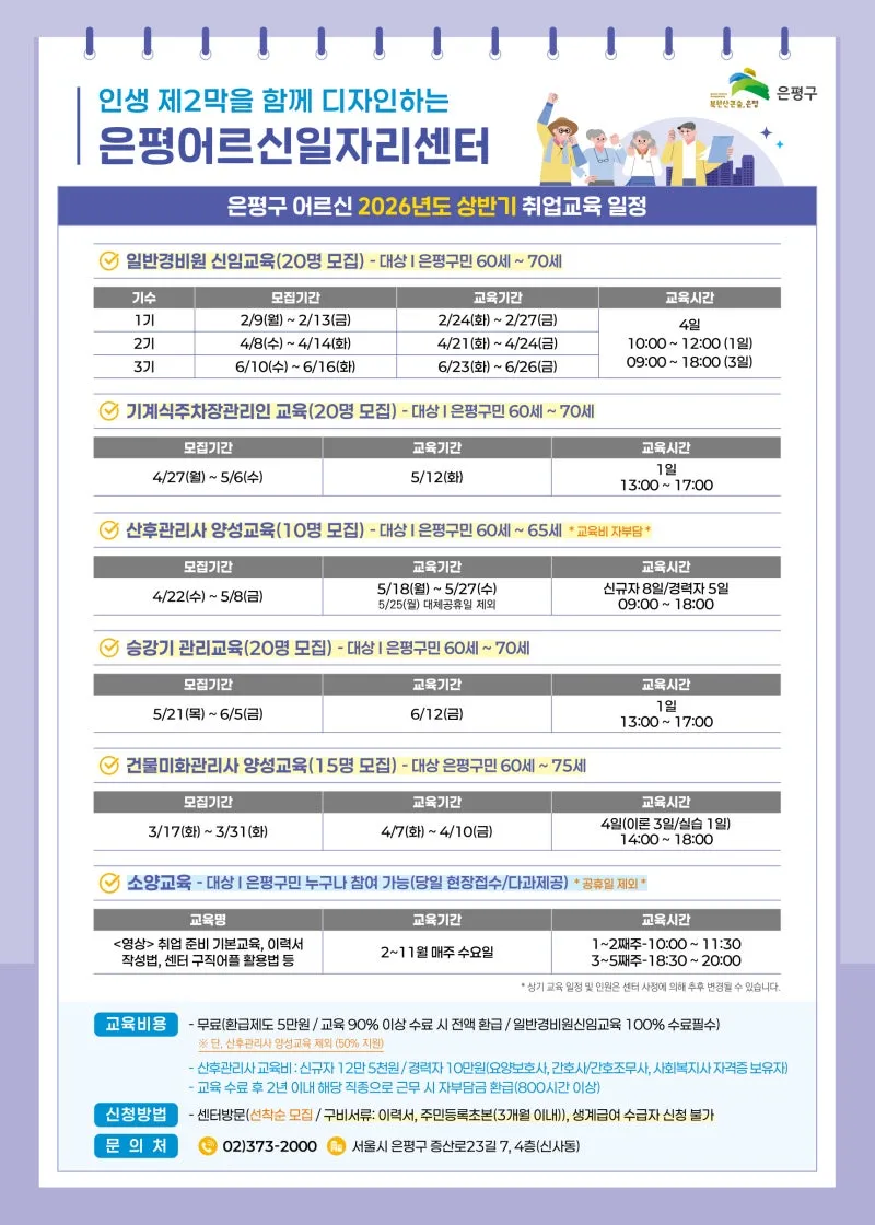 은평어르신일자리센터 상반기 취업교육생 모집 "경비원, 주차장 관리인, 산후관리사 등"