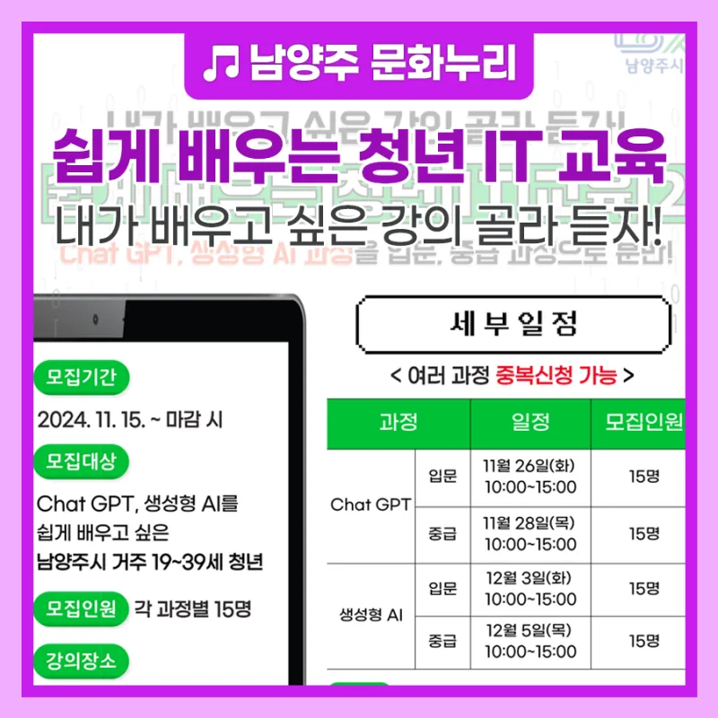 2024. 11. 26.(화) ~ 12. 5.(목) ※과정별 상이, 신청 시 확인