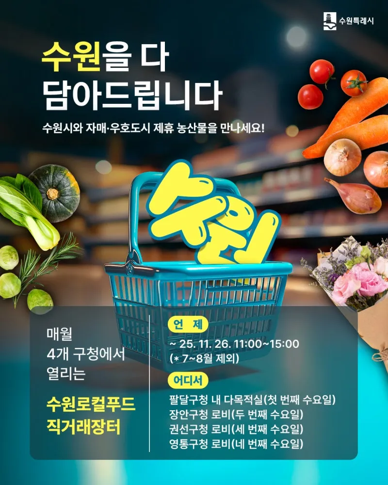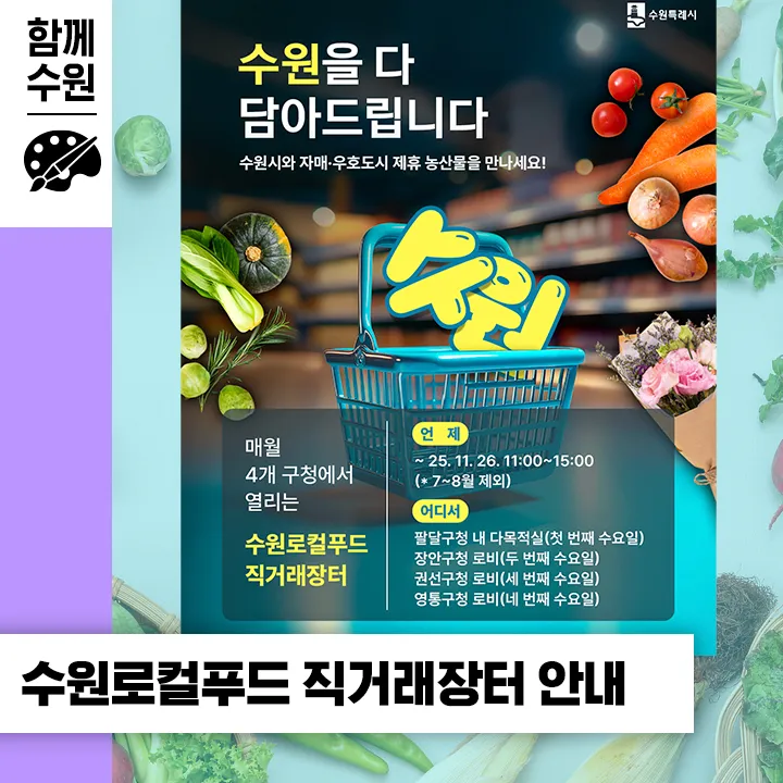 매월 4개 구청에서 열리는 '수원로컬푸드 직거래장터' 안내