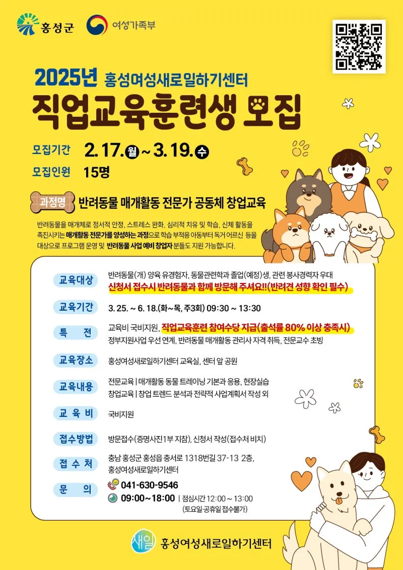 2025년 홍성여성새로일하기센터직업교육훈련생 모집