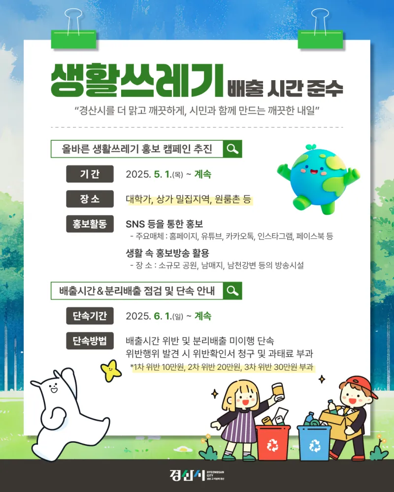 📌 생활쓰레기 배출시간 & 분리배출 점검 및 단속 안내
