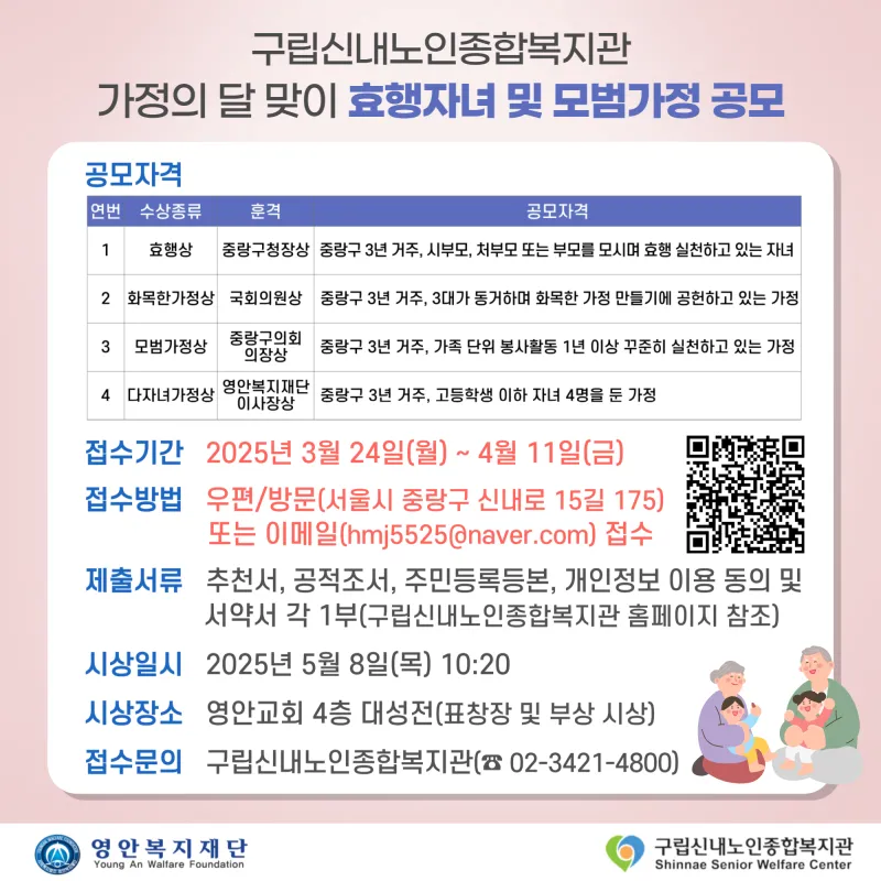구립신내노인종합복지관 가정의 달 맞이 효행자녀 및 모범가정 공모