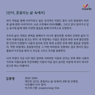서산문화재단 3월 전시프로그램 "산다, 흔들리는 삶 속에서"