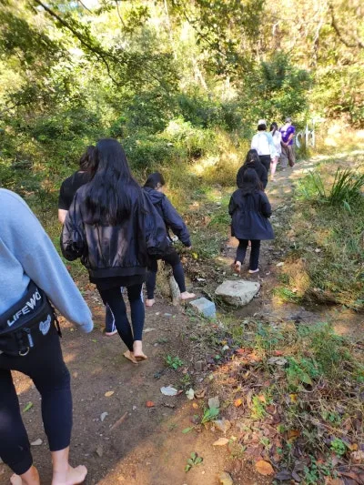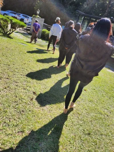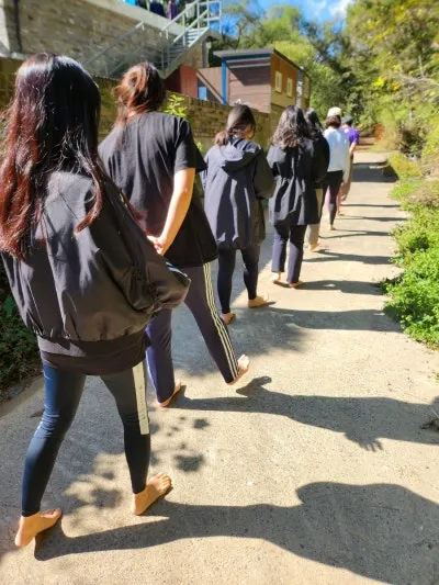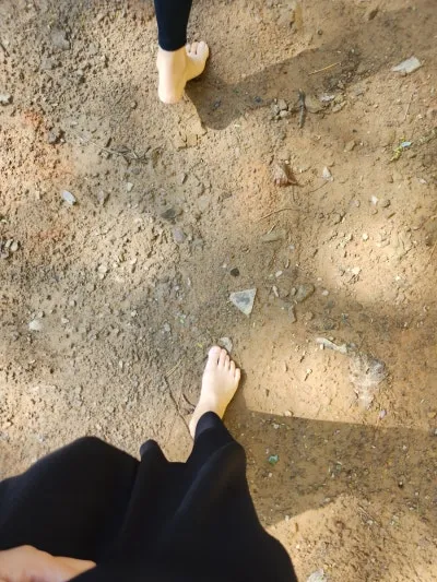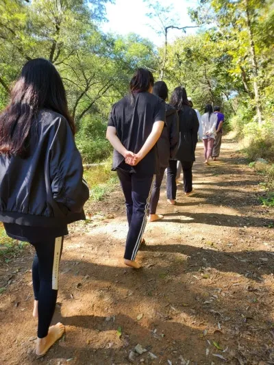 두 번째 프로그램은 본관으로 넘어가 신발을 벗어두고 숲 요가 명상센터 주위를 맨발 걷기로 다녀왔습니다.