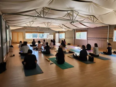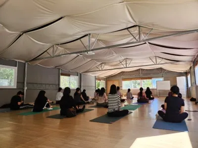 지난해는 본 건물의 잔디밭에 앉아서 요가를 진행하였는데 이번에는 별관에서 진행이 되었습니다.