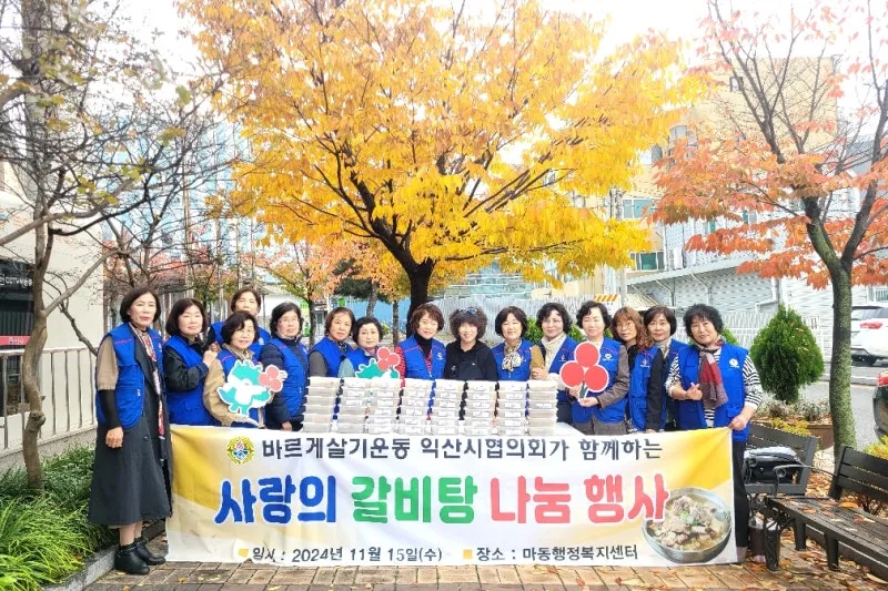 바르게살기운동본부 익산시협의회는 다양한 봉사활동을 통해 지역사회에 온기를 더하고, 나눔과 배려의 정신을 실천하는데 힘쓰고 있다. 지난 1, 2월에는 각각 갈비탕과 김치를 마동 행정복지센터에 전달한 바 있다.