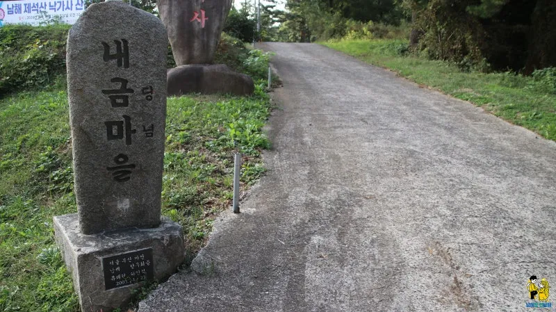 제석산 낙가사로 들어가는 진입로에는 내금마을 표석도 함께 자리하고 있습니다.