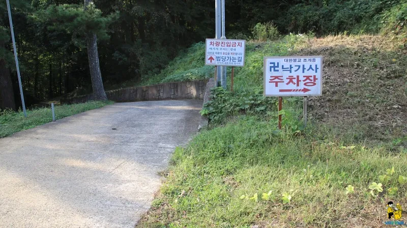 낙가사 주차장에 차를 세우고 길을 걸어가기로 합니다.