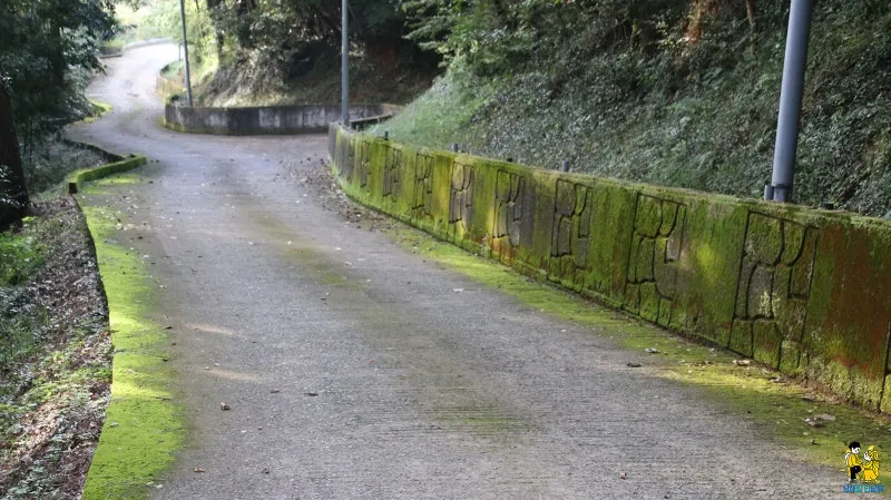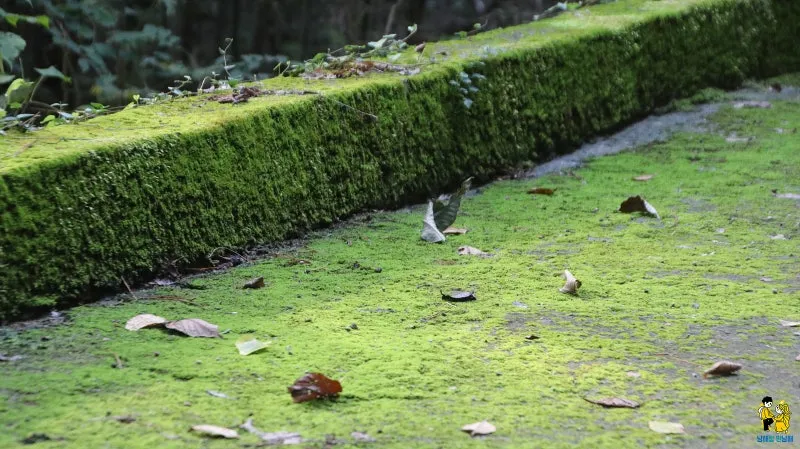 길 가장자리에 이끼가 잔뜩 끼어 있는 장면이 보입니다.
