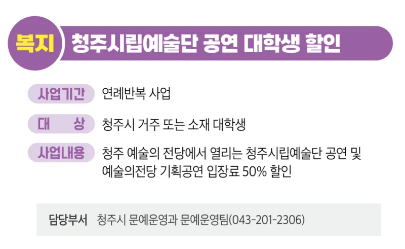 마지막으로 청주시립예술단 공연 입장료 50% 할인 혜택도 있습니다!