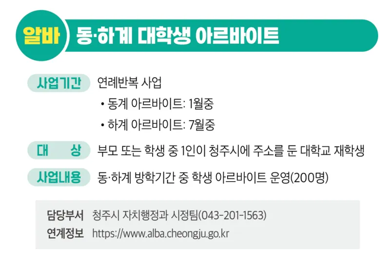 청주시 대학생이라면! 청주시청에서 시행하는 동·하계 대학생 아르바이트에도 참여해 보세요!