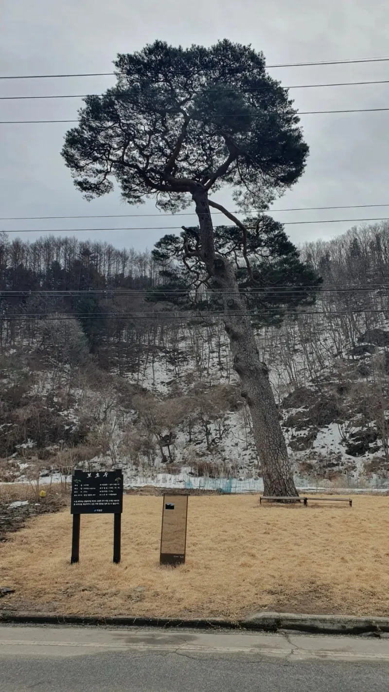 이전에 이곳에 방문했을때 해당나무 주변에 새끼줄이 쳐져있는 것을 보고 마을에서 신성시하는 나무라는 것을 알아차릴 수 있었는데요. 아니나 다를까 이 나무는 오래전부터 전해내려오는 전설하나가 깃들여 있답니다. 나무앞에 세워져있는 스토리텔링 안내판의 내용을 간단히 요약하자면 과거 이곳에 살던 주민들은 소나무를 베어내 물건을 만들어 내다팔며 생계를 유지하였는데 이로인해 마을의 소나무가 모두 사라지고 이 소나무 하나만 남았다고해요. 이후 밤마다 호랑이가 내려와 주민들의 집을 어슬렁거리며 위협을 주었는데 마을주민들은 산신령이 노한것이 분명하다 생각하여 마을에 단 한그루 남아있는 이 소나무를 신성시해왔다고해요. 지금도 가림마을 주민들은 음력 3월 3일마다 해당 나무에서 제사를 지낸다고 하는데요. 이렇듯 외형도 멋지고 수령도 300년이 넘었으며 특별한 이야기까지 전해내려오는 가림마을 소나무는 멋진 관광지와는 조금 거리가 있어보이지만 주변에서 흔히 볼 수 없는 자연물이니 여러분들도 오며가며 한번쯤 방문해보시길 바라며 이만 글을 마칠께요.