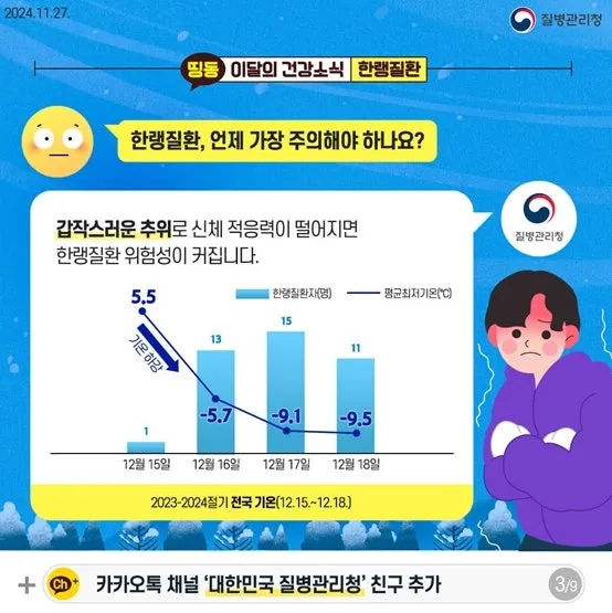 갑작스러운 추위로 신체 적응력이 떨어지면