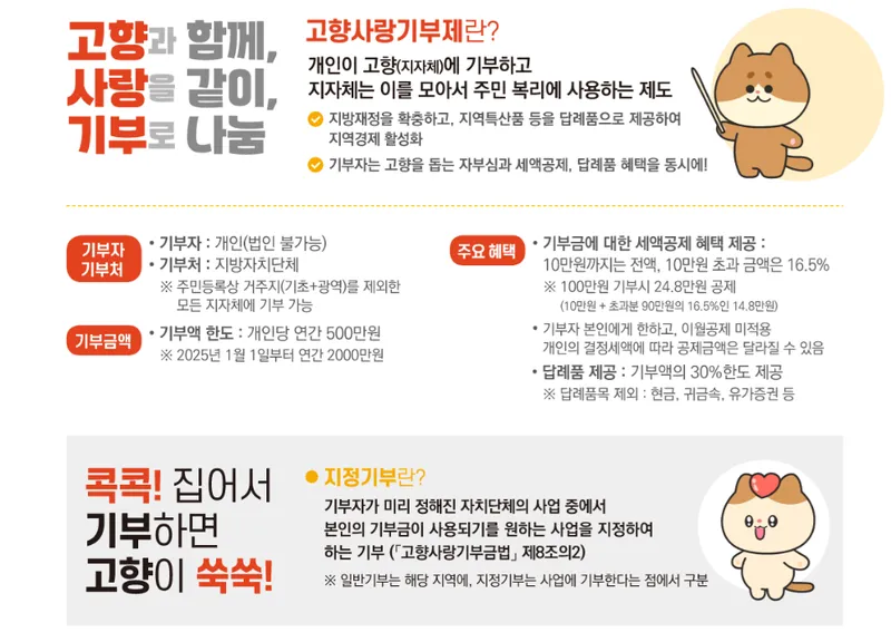 또한, 지자체 사업 중 기부금이 사용되기를 원하는 사업을 지정해 기부할 수 있는 '지정 기부'도 가능하다고 합니다.