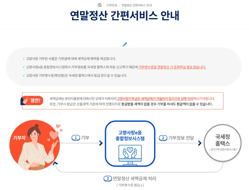 기부금은 국세청 홈텍스에 자동 신고되어 연말정산 간소화 서비스에 자동 반영되므로