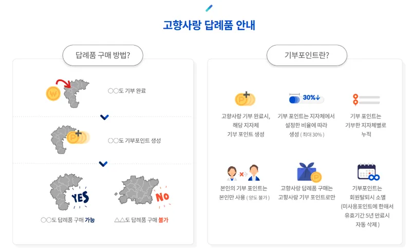 고향사랑 기부 완료 시 지자체에서 설정한 비율에 따라 최대 30%의 기부 포인트가 생성되며