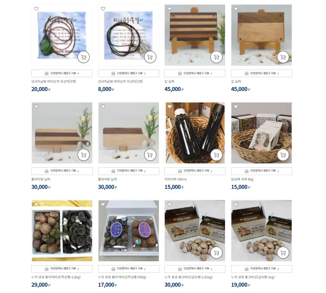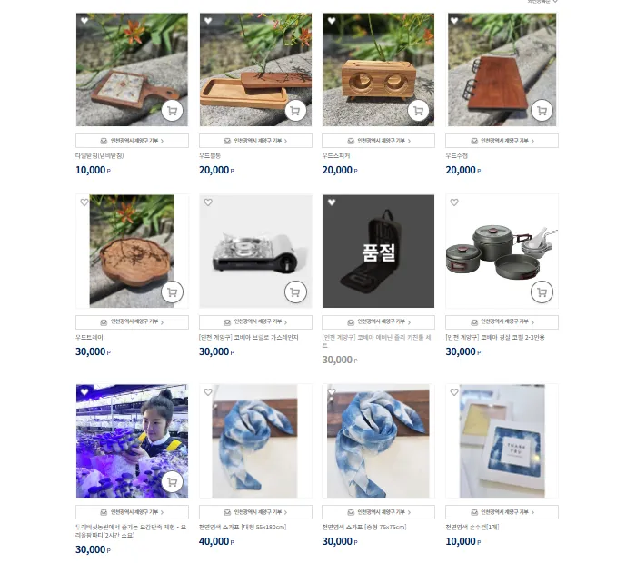 계양구의 답례품은 수공예품, 버섯과 쌀, 커피와 누룽지, 캠핑 용품,