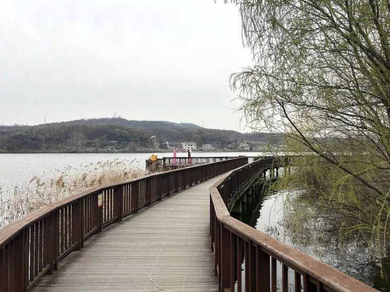 다섯째, 물멍을 하며 자연의 소리에 귀 기울일 수 있습니다. 저수지와 습지가 가깝게 있어서 새소리와 물소리에 귀 기울이며 걷기 좋습니다. 천천히 걷다 보면 절로 힐링이 됩니다. 자연의 소리를 듣다 보면 복잡한 생각들은 사라지고 마음이 평온해집니다.