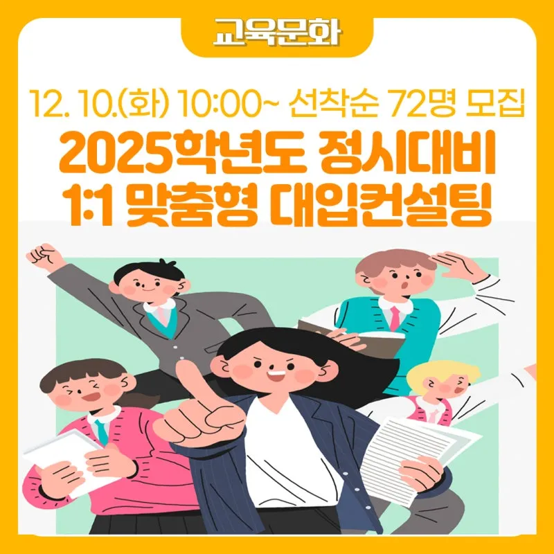 2025학년도 정시대비 1:1 맞춤형 대입 컨설팅(72명 선착순 모집)