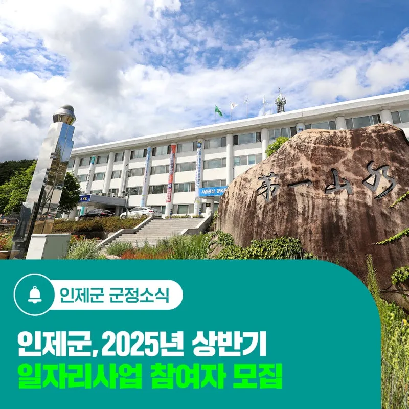 인제군, 2025년 상반기 일자리사업 참여자 모집