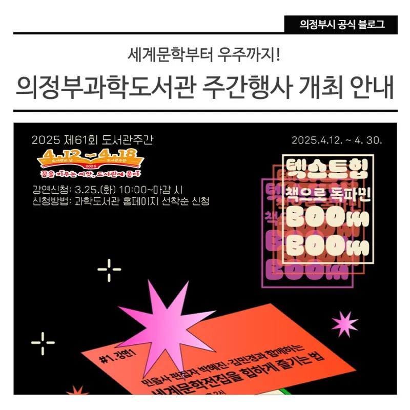 {"title":"세계문학부터 우주까지! 의정부과학도서관 주간행사 개최 안내","source":"https://blog.naver.com/hope_city/223800551003","blogName":"의정부시 ..","domainIdOrBlogId":"hope_city","nicknameOrBlogId":"의정부시","logNo":223800551003,"smartEditorVersion":4,"meDisplay":true,"lineDisplay":true,"outsideDisplay":true,"cafeDisplay":true,"blogDisplay":true}