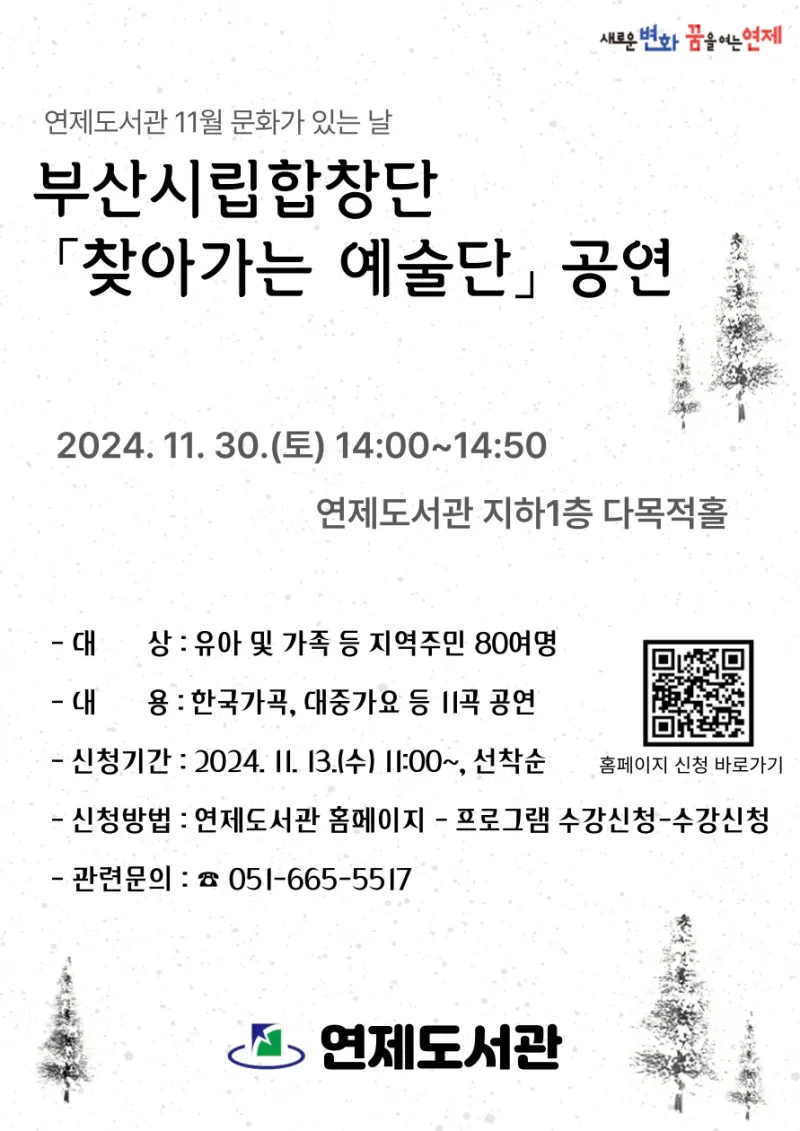 부산시립합창단 「찾아가는 예술단」공연 연제구 평생교육과 ☎051-665-5517 |