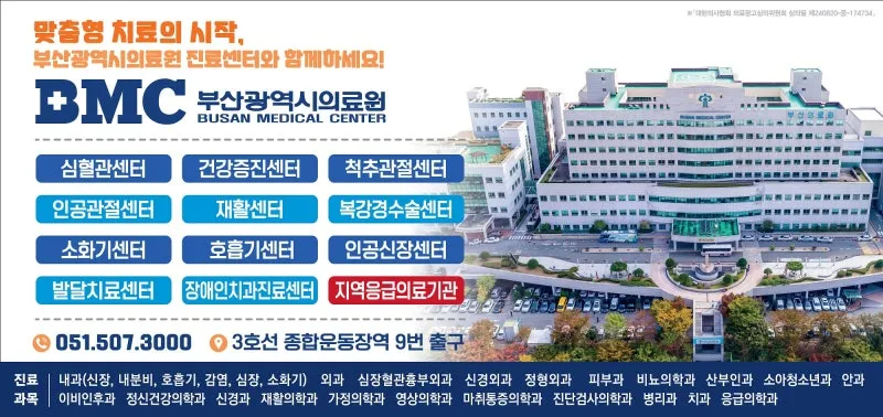 부산광역시의료원과 함께하세요 부산광역시의료원 ☎051-507-3000 |