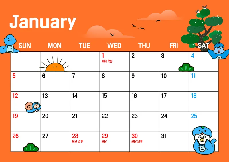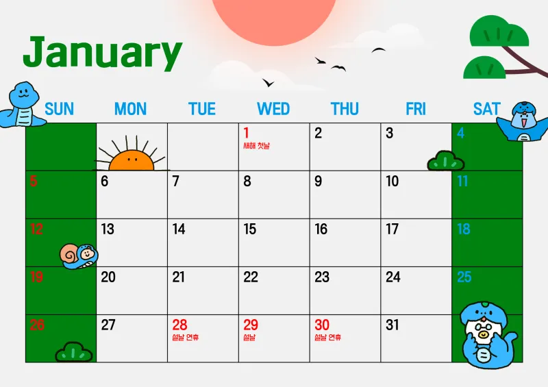 [1월의 군포]"새로운 시작 1월" 캘린더 배경화면 및 다이어리 다운로드(PC/모바일)