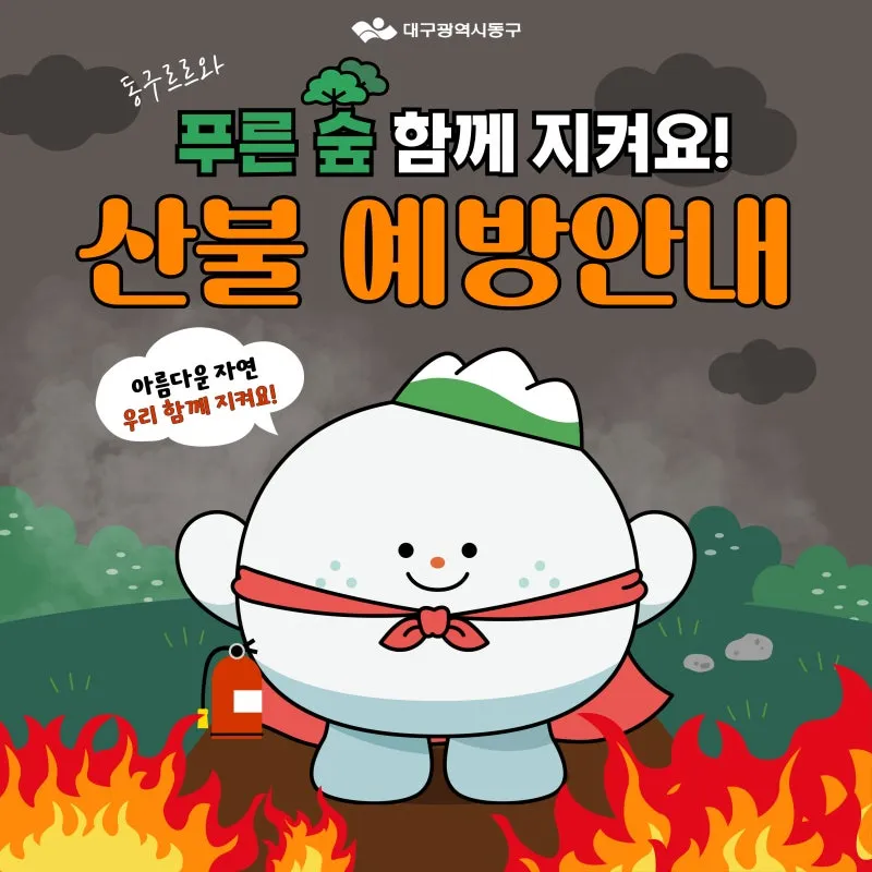 동구르르와 푸른 숲 함께 지켜요! 산불 예방안내