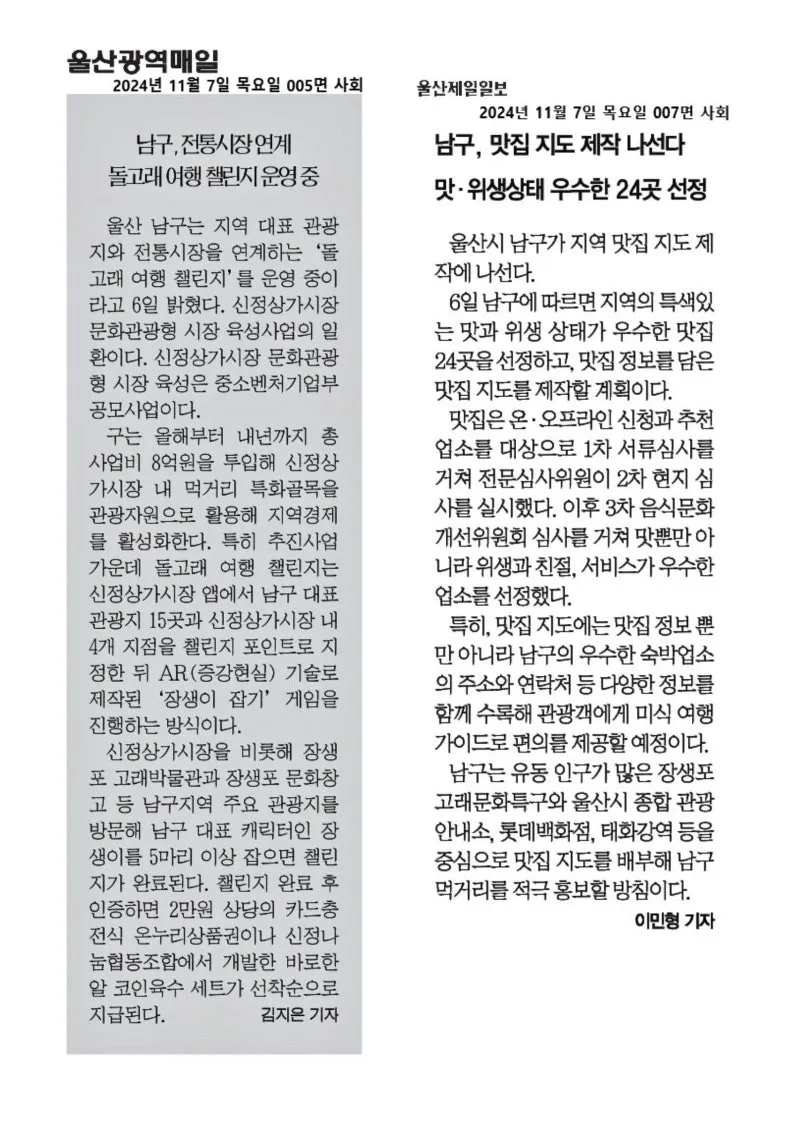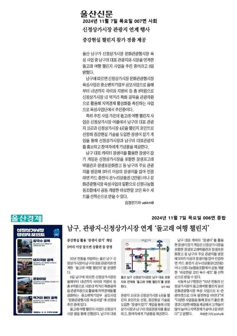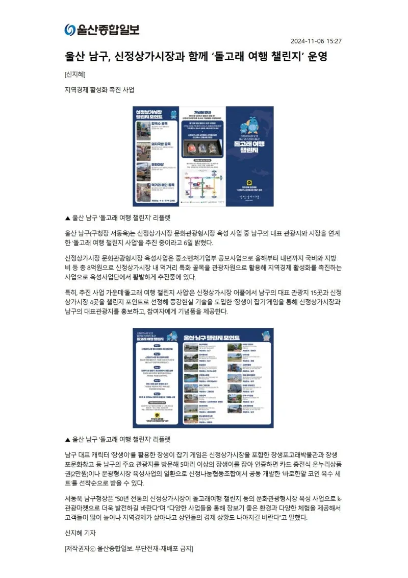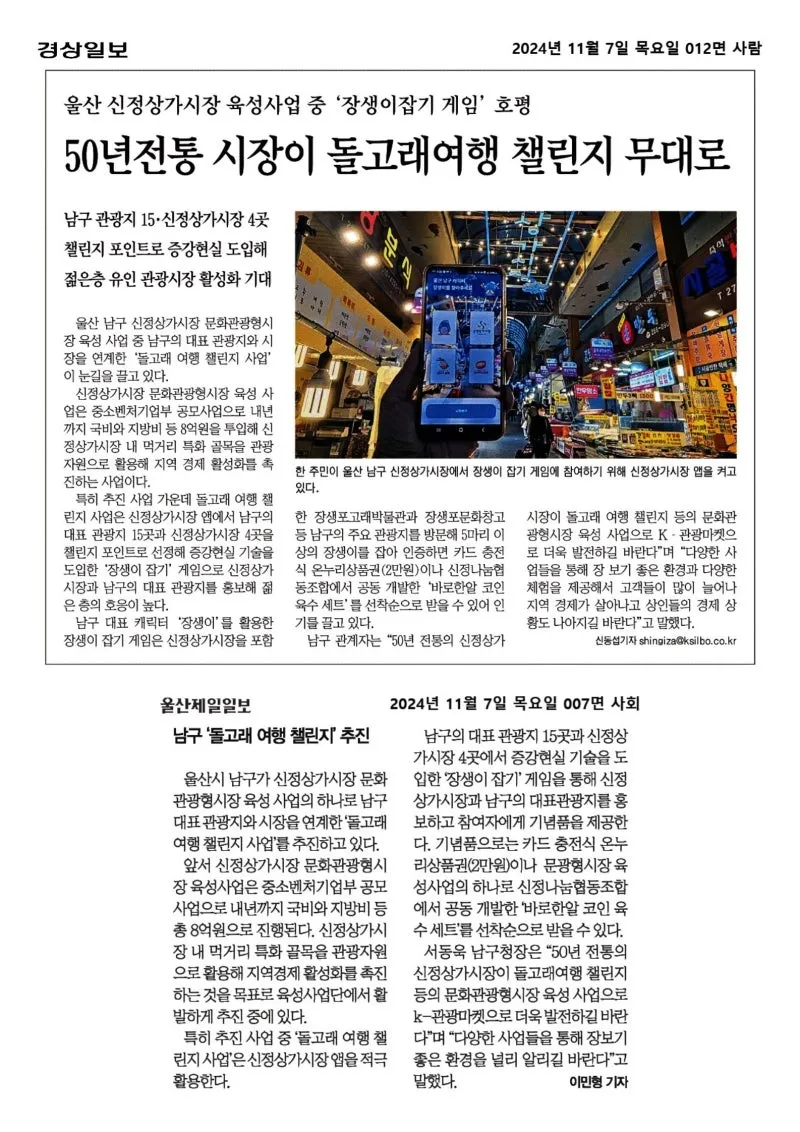 웰로1년 전[행복남구 오늘의신문] 50년 전통시장이 돌고래여행 챌린지 무대로!! (11월 7일 목요일) {"title":"[행복남구 오늘의신문] 50년 전통시장이 돌고래여행 챌린지 무대로!! (11월 7일 목요일)","source":"https://blog.naver.com/ulsan-namgu/223650428525","blogName":"울산광역시..","blogId":"ulsan-namgu","domainIdOrBlogId":"ulsan-namgu","nicknameOrBlogId":"울산광역시남구","logNo":223650428525,"smartEditorVersion":4,"meDisplay":true,"lineDisplay":true,"outsideDisplay":false,"cafeDisplay":false,"blogDisplay":false} #울산남구#돌고래여행#남구맛집지도#장생포문화창고출처:https://blog.naver.com/ulsan-namgu스크랩