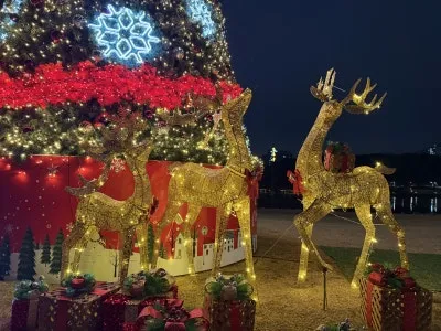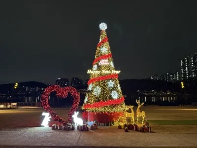 멀리서부터 빛나는 트리의 모습이 시선을 사로잡습니다.