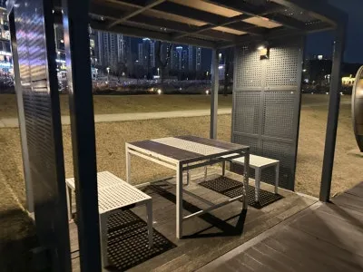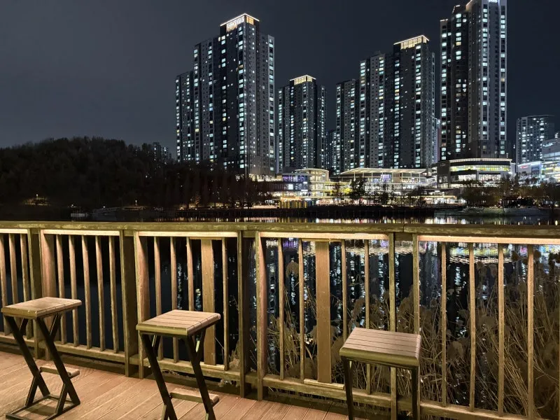 혼자 앉아서 사색을 즐기며 호수의 비친 야경과 동탄의 도시 미를 느낄 수 있는 자리입니다.