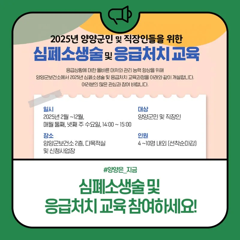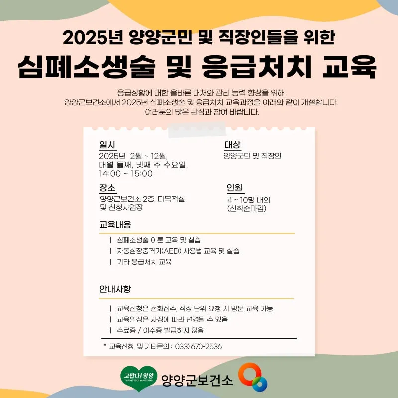 올해 심폐소생술 및 응급처치 교육은 2월부터 12월까지,