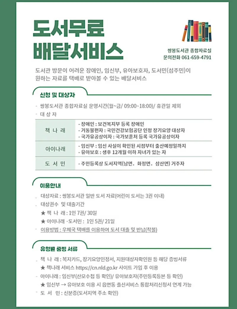 도서관이 집으로! 여수 쌍봉도서관 '도서 무료배달 서비스'