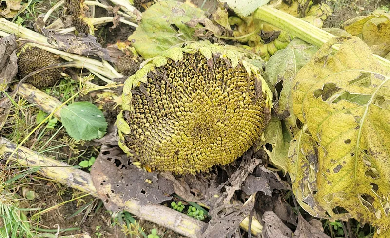 해바라기도 씨를 털기 위해 말리고 있습니다.