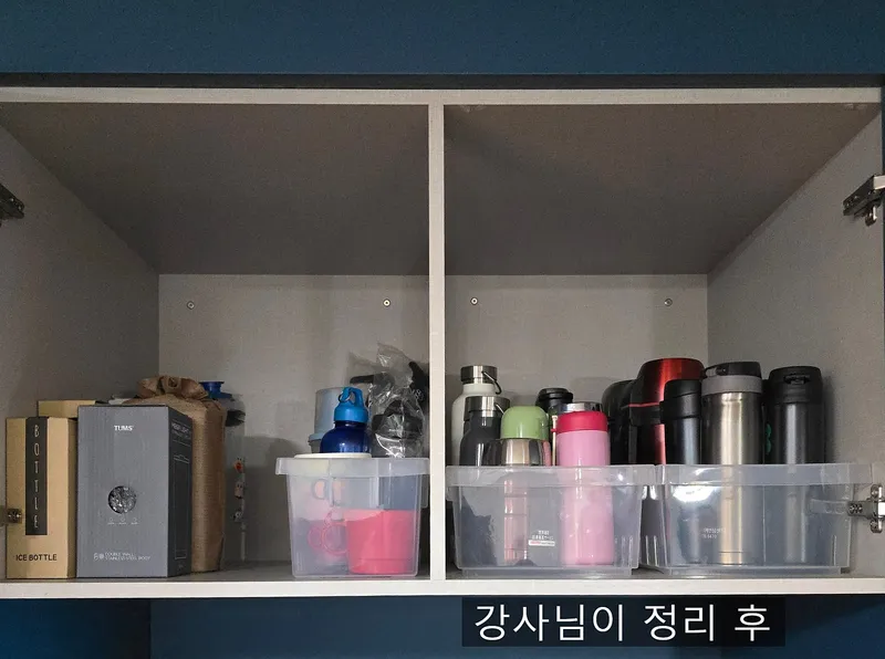 텀블러를 정리하는 방법을 배웠으며, 정리가 제대로 되지 않은 상태와 수강생이 정리한 상태를 비교했습니다.