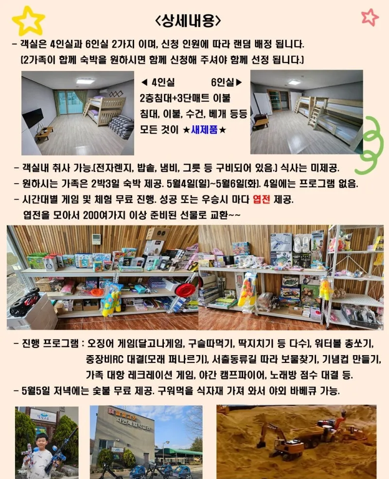 ★ 숙박료 및 놀이, 체험, 선물이 무료 제공 / 참여비 0원