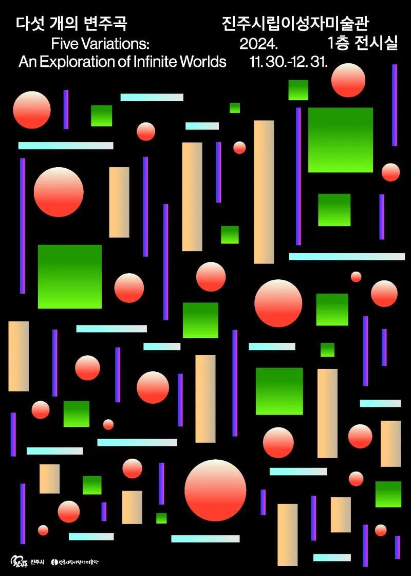 ❝ 다섯 개의 변주곡 展 ❞ ✅기간 : 2024. 11. 30.(토) ~ 12. 31.(화) ✅ 운영시간 : 10시~17시(입장마감 16:30) ※ 휴관일 : 매주 월요일, 1/1, 설날, 추석 ✅ 장소 : 진주시립이성자미술관 1층 전시실 ✅ 전시내용