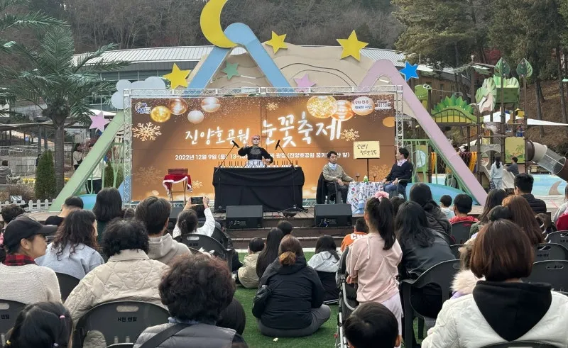 - 광장 내 대형 크리스마스트리 - 눈 내리는 잔디밭, 진양호공원 시설 등 - 참여미션 : ① 진양호공원 인스타 댓글 ② 진양호공원 홈페이지 체험후기 올리기