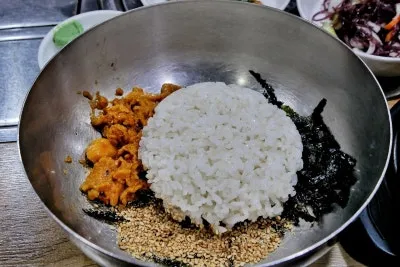비빔밥에다 넣어서 같이 비벼 먹으니 맛이 더 좋더라고요.